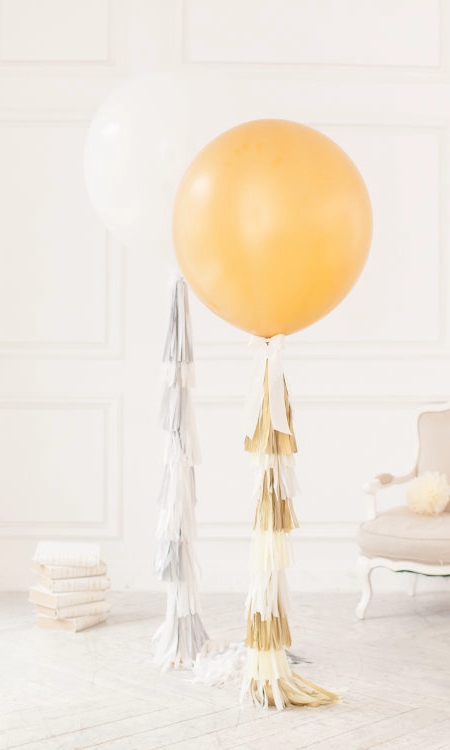 Большие шары белого и золотого цвета на гирляндах (70 см) и (90 см) (3)