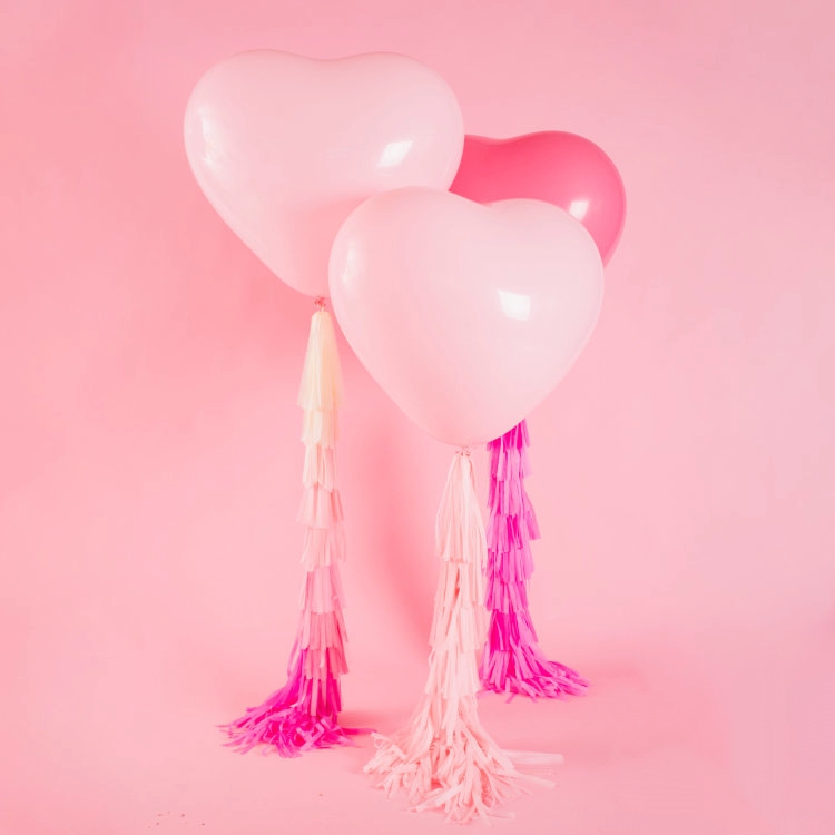 Большие шары сердца розового,фуксия цвета на гирлянде (90 см) (3)