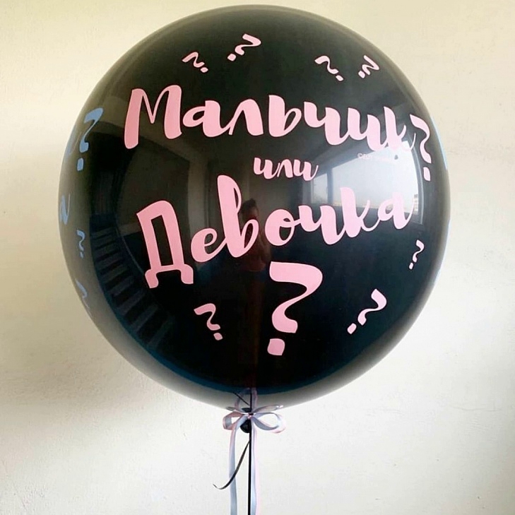 Большой черный шар с рисунком и конфетти на атластной ленте (можно изменить цвет конфетти) (60 см) (3)