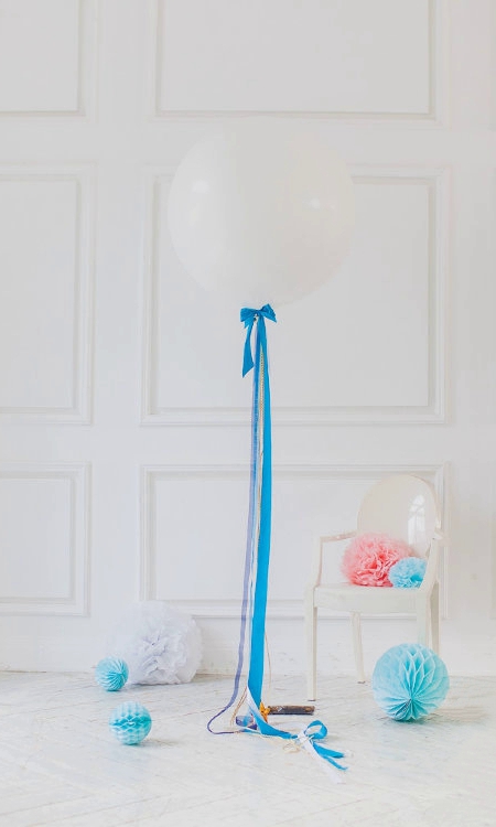 Большой шар белого цвета на атластных лентах  (70 см) (3)