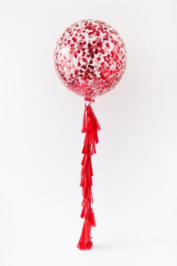 Большой прозрачный шар с конфетти сердца на гирлянде (можно изменить цвет конфетти) (90 см) (3)