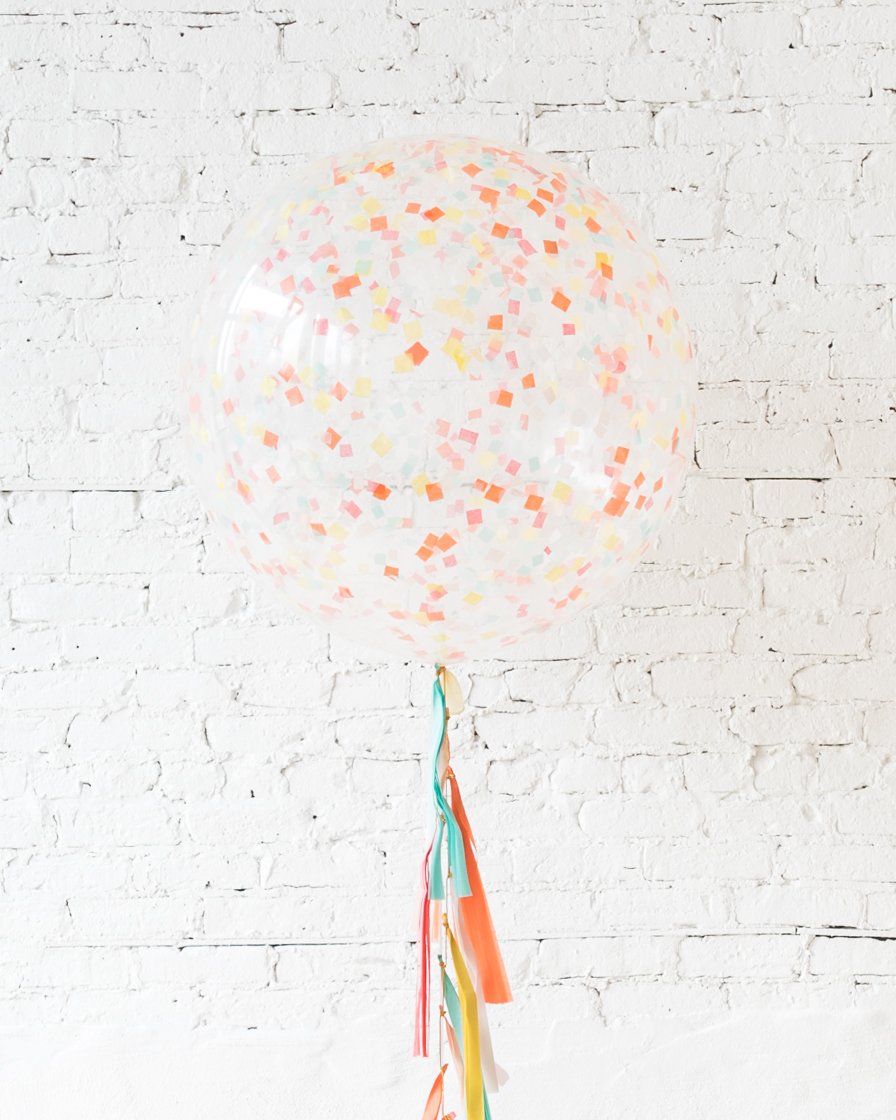 Большой шар с квадратным конфетти оранжевым на гирлянде