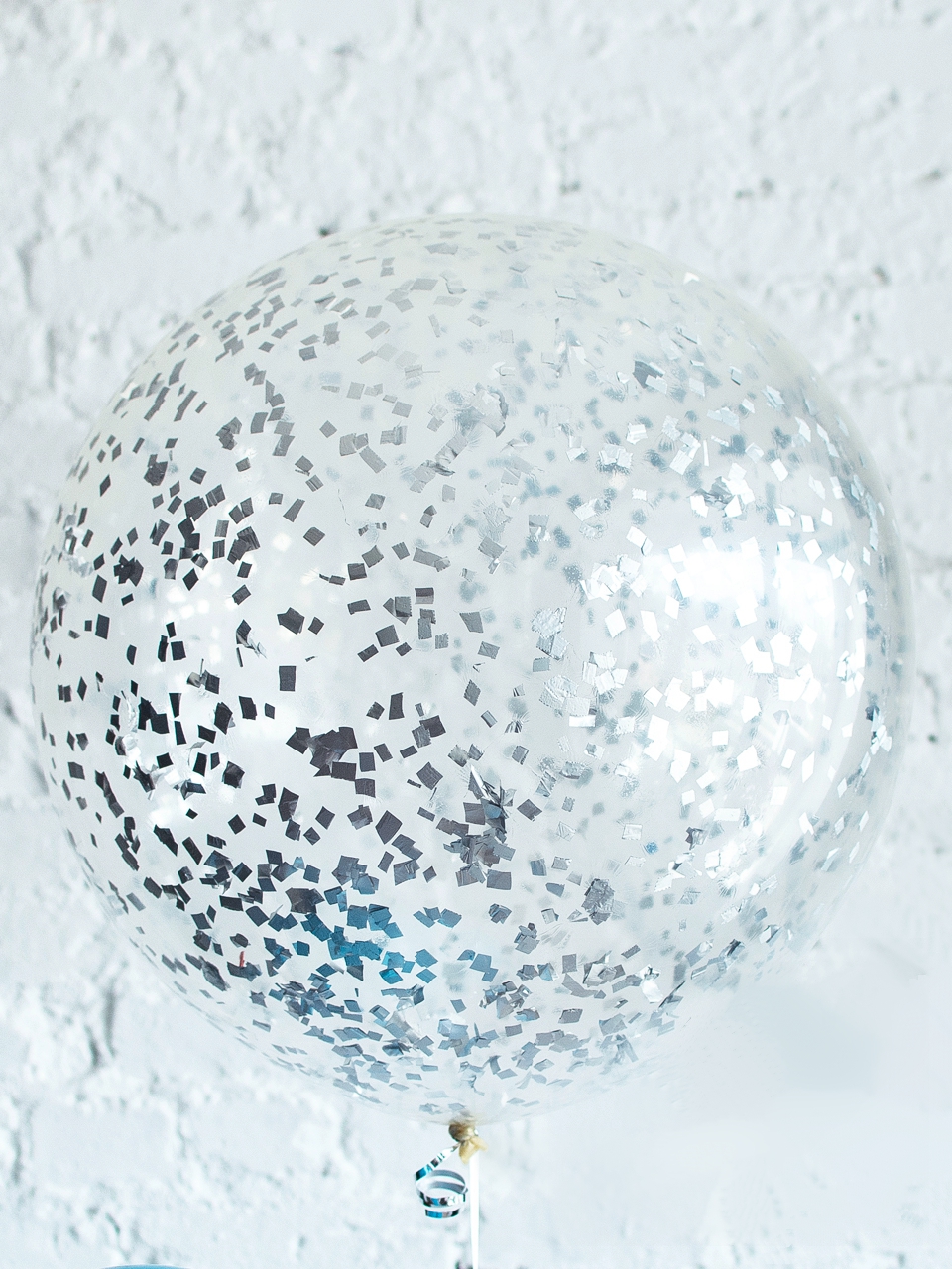 Большой шар с серебряным квадратным конфетти