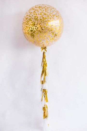 Большой прозрачный шар с золотым конфетти на гирлянде (можно изменить цвет конфетти) (90 см) (3)