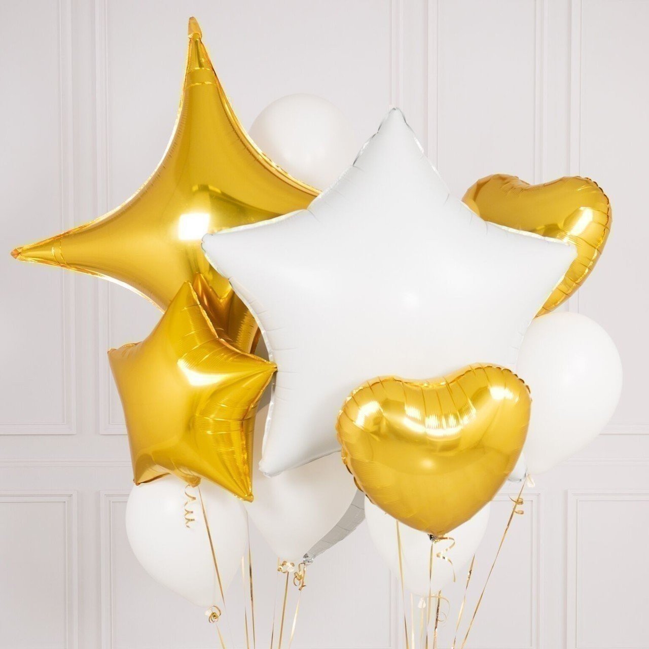 - 1 фольгированная звезда золотая 4х-конечная (71см)