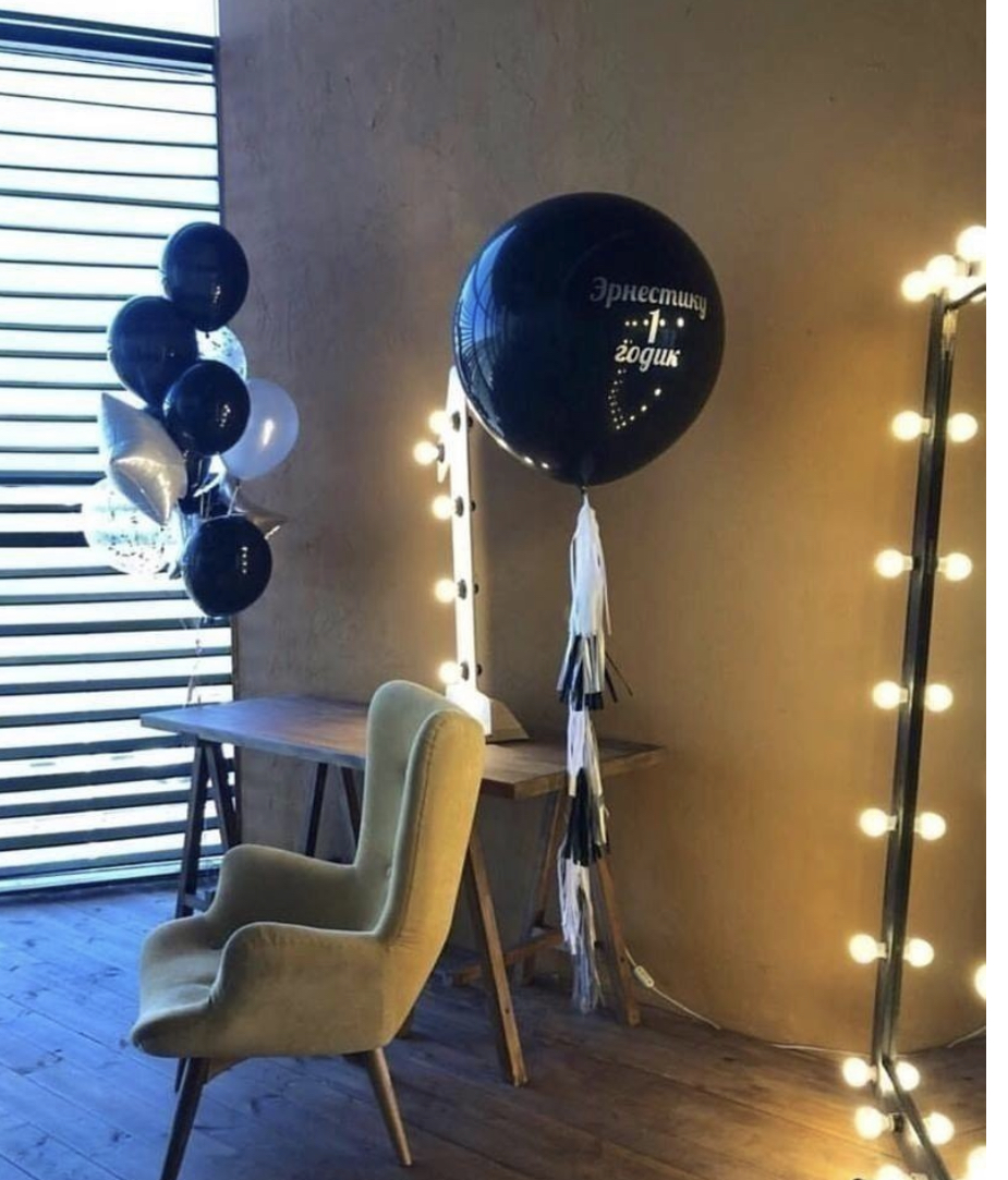 - 1 Огромный черный шар с надписью и гирляндой (90 см) (3)