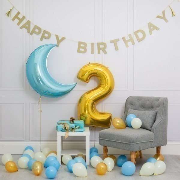 - 1 большая фольгированная цифра 2 золотая (102см) По желанию заказчика можно изменить.