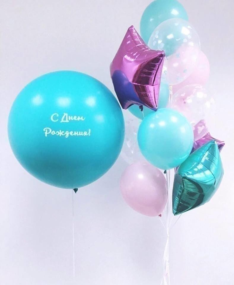 - 1 Огромный бирюзовый шар с печатью на атластной ленте  ( 70 см) (3)