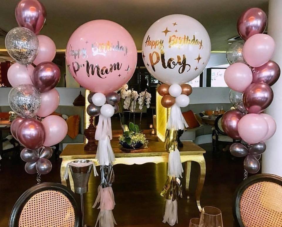 - 1 Огромный розовый шар с гирляндой и надписью (90см)