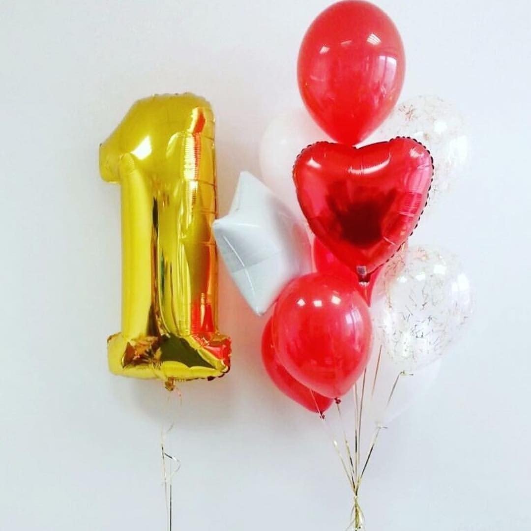 - 1 фольгировынный золотой шар цифра 1 (цифры можно заменить в букете на нужные Вам) ( 102 см) (3)