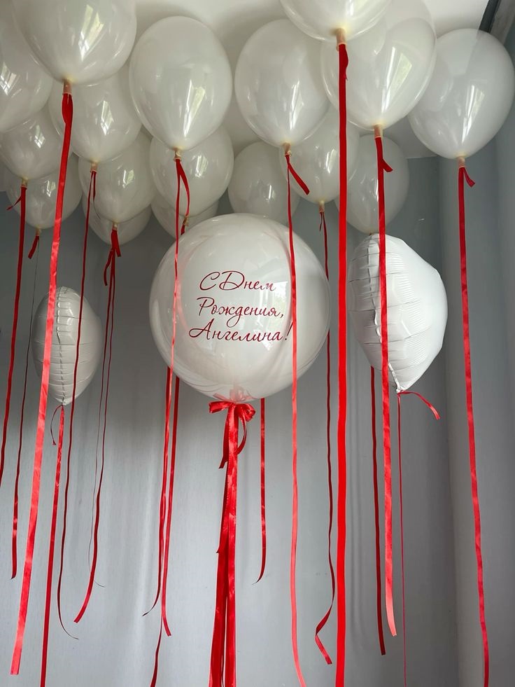 - 2 белых фольгированных сердца белых на атластной ленте 45 см;