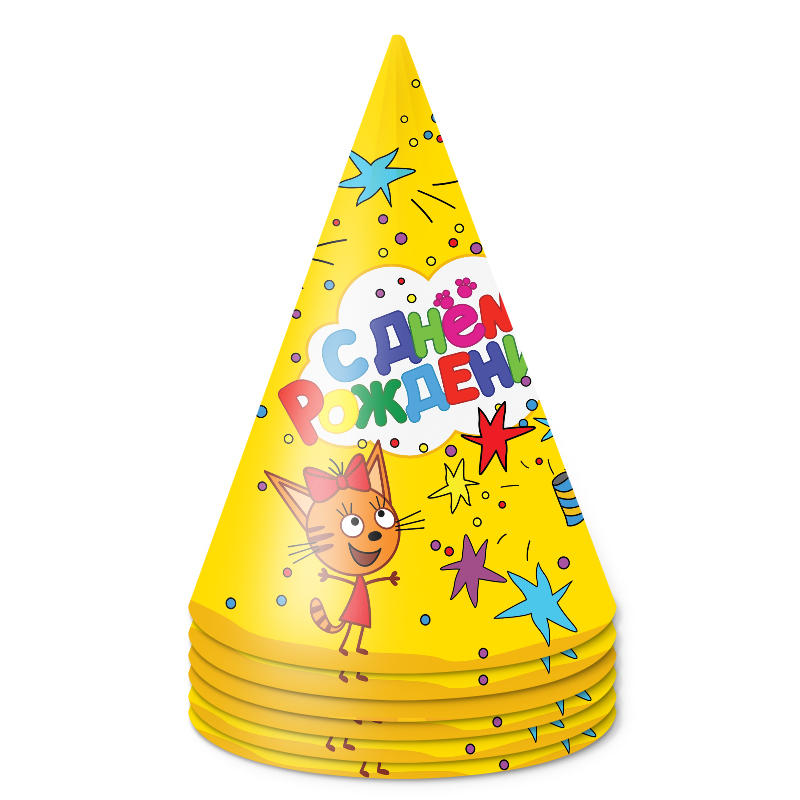 Колпаки, Три Кота, С Днем Рождения!, Желтый, 6 шт. в интернет-магазине . Заказать с доставкой! Тел.: +7 (495) 117-74-27.
