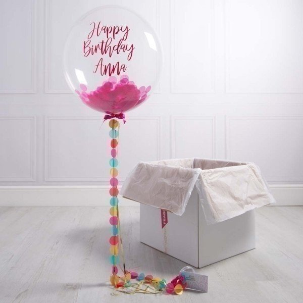 Шар Bubble с конфетти, гирляндой и надписью в коробке.
