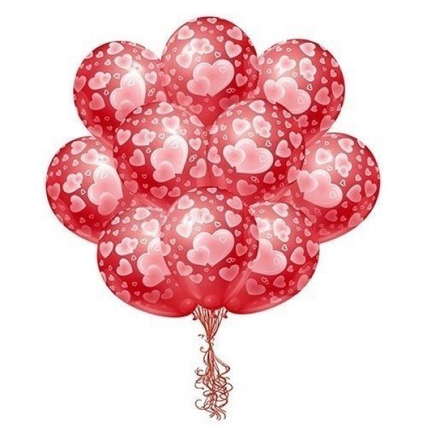 - 25 больших латексных красных шаров с изображение сердечек (35 см) (з)