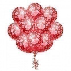 - 50 больших латексных красных шаров с изображение сердечек (35 см) (з)