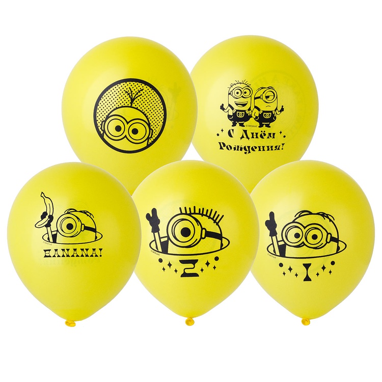 - 10 больших латексных шаров с изображением героев культового мультфильма Миньоны Премиум (35 см) (з)