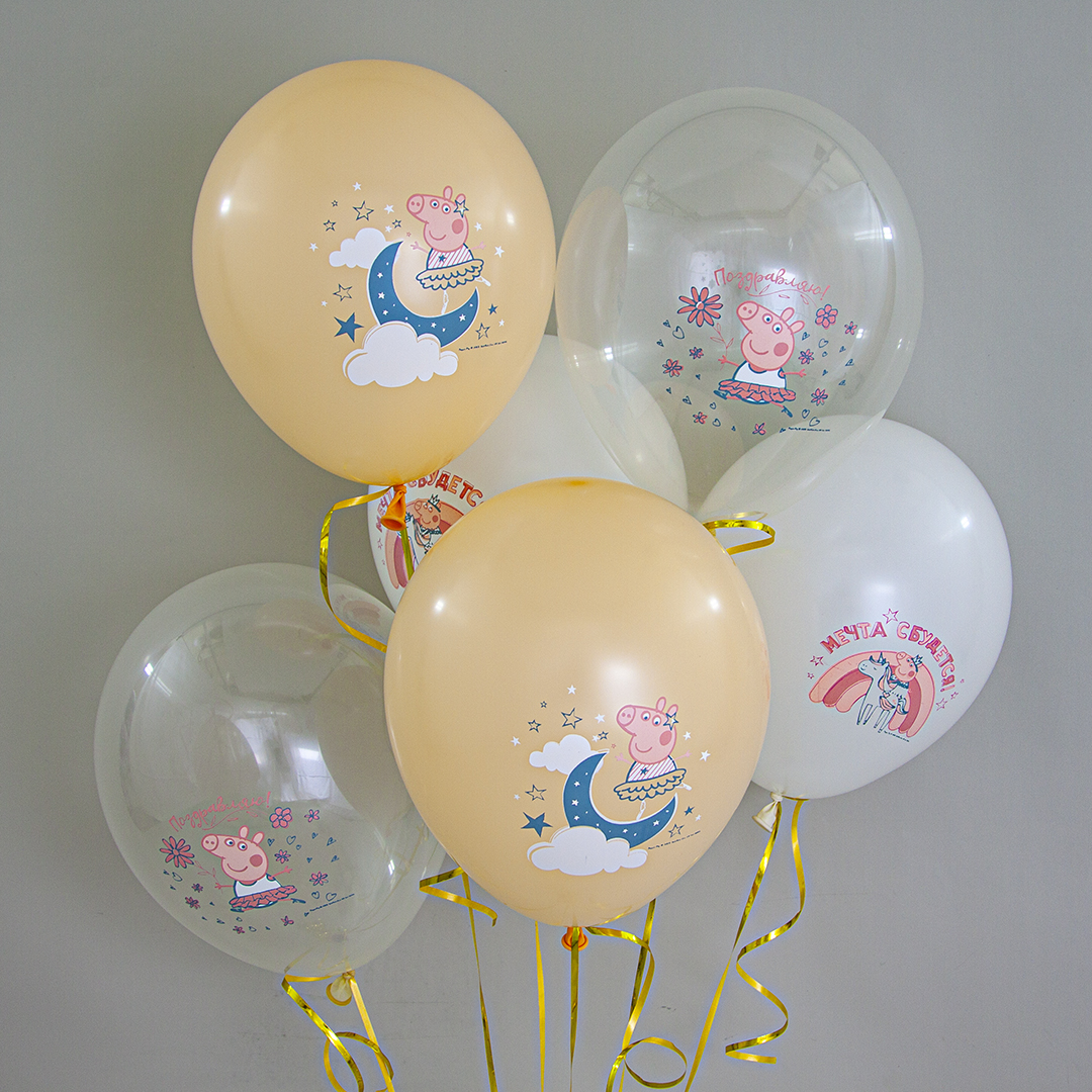 - 100 больших красивых шаров с изображением персонажа мультика Свинка Пеппа (35 см) (з)
