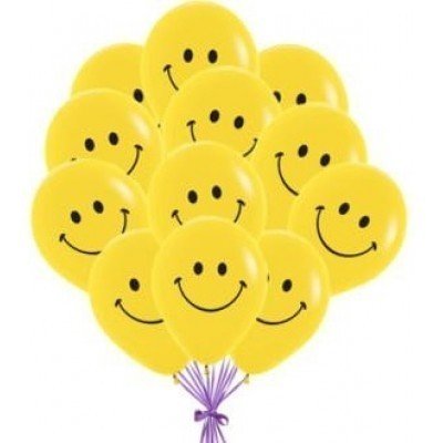 - 100 больших латексных шаров с изображением улыбающихся рожиц на желтом фоне (35 см) (з)