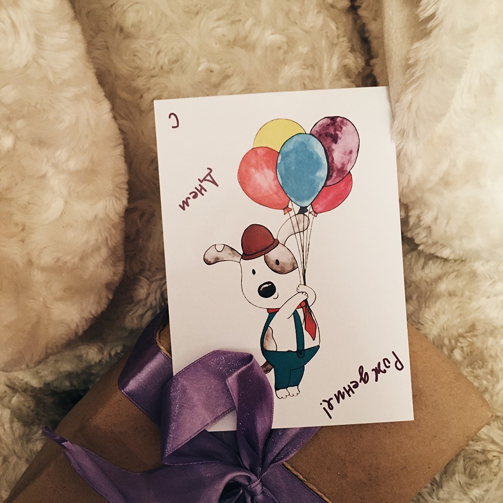 Открытка «Пес с шарами» в интернет-магазине . Заказать с доставкой! Тел.: +7 (495) 117-74-27.