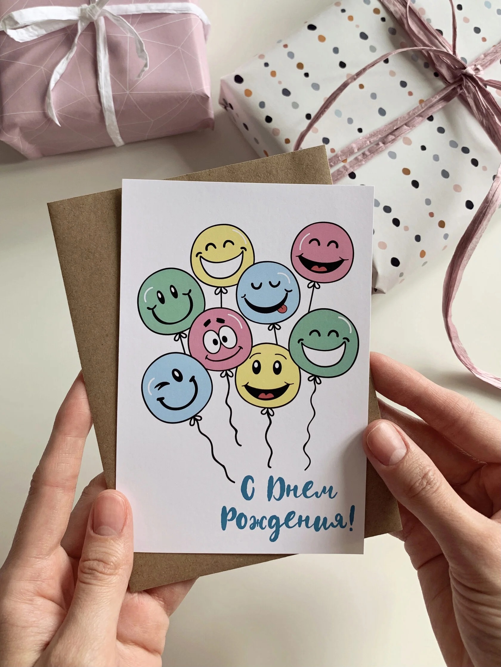Открытка «С ДР разноцветные шары смайлы» в интернет-магазине . Заказать с доставкой! Тел.: +7 (495) 117-74-27.
