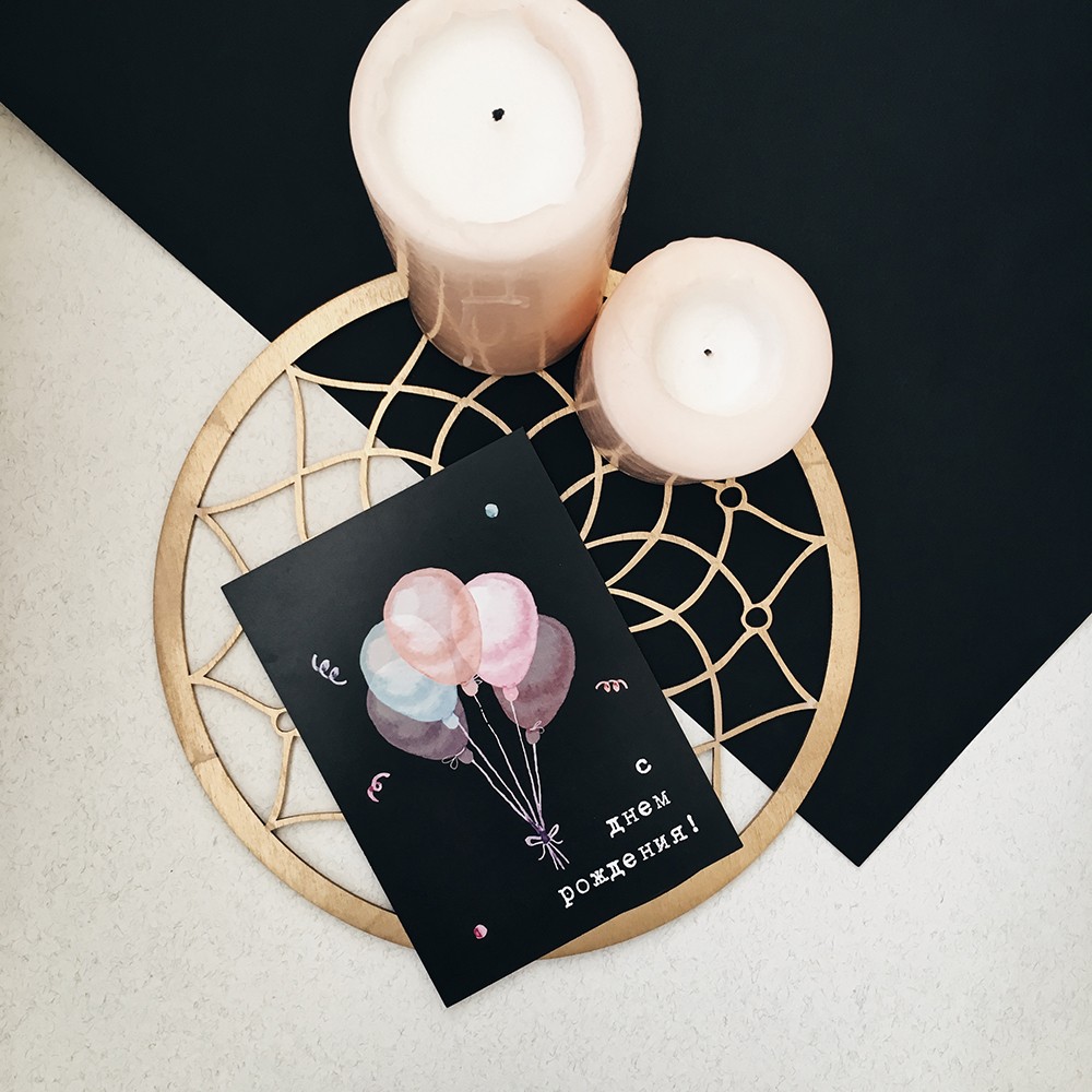 Открытка «Шарики акварель с черным фоном» в интернет-магазине . Заказать с доставкой! Тел.: +7 (495) 117-74-27.