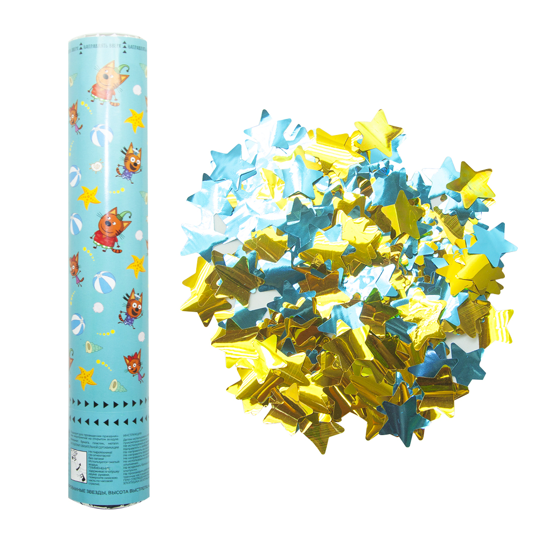Пневмохлопушка 30 см Три Кота Морские приключения Звезды фольга