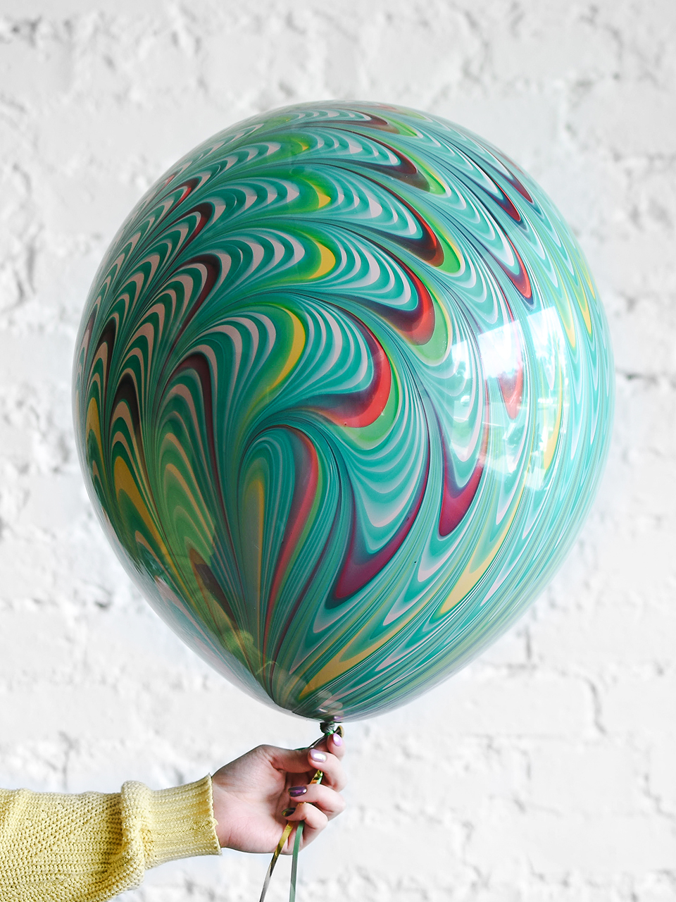- 1 латексный шар Бирюзовый мраморный на ленте.