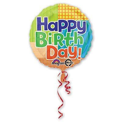 Круглый фольгированный шар будто выполнен из цветных лоскутов, но не в классической деревенской технике, а в динамичных красках современного города пусть у именинника жизнь будет такой же яркой и активной!