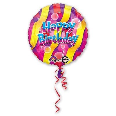 Круглый фольгированный шар с яркими полосками и розовыми мыльными пузырями пусть у именинника жизнь будет такой же яркой и сладкой!