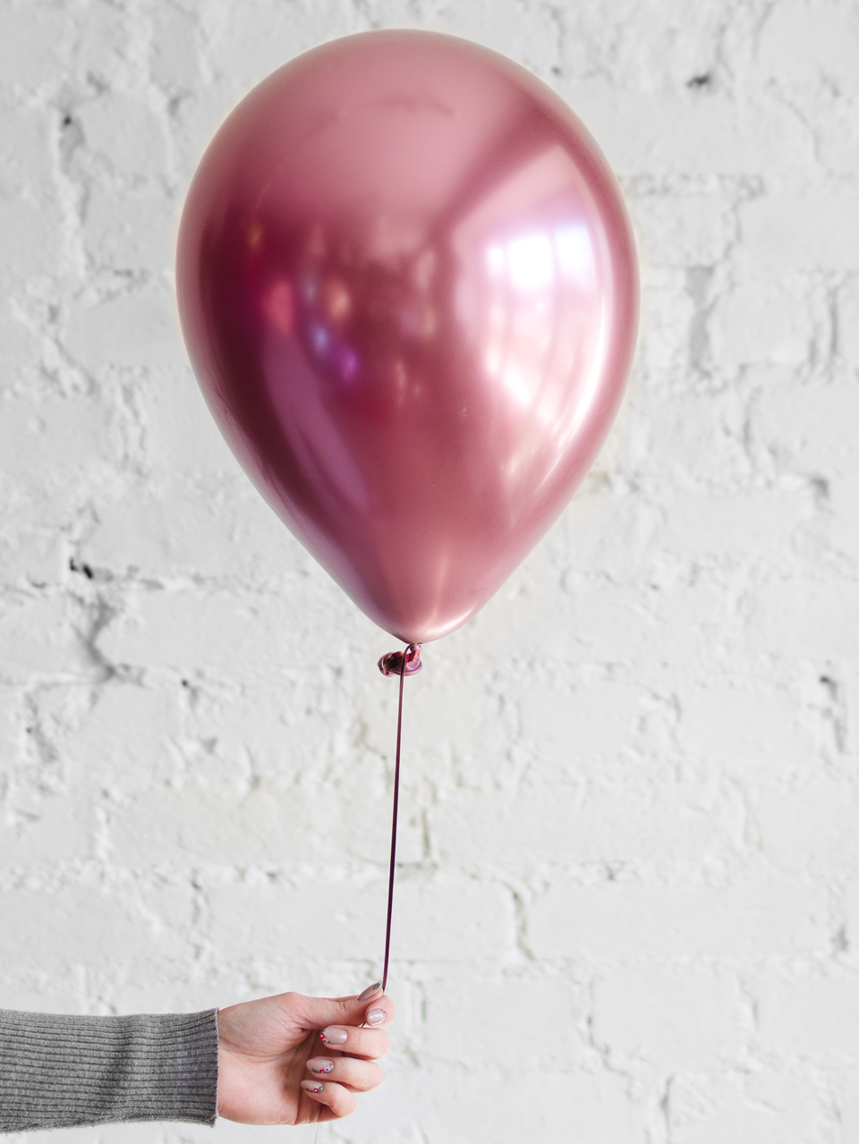 - 1 латексный шар розовый хром на ленте.