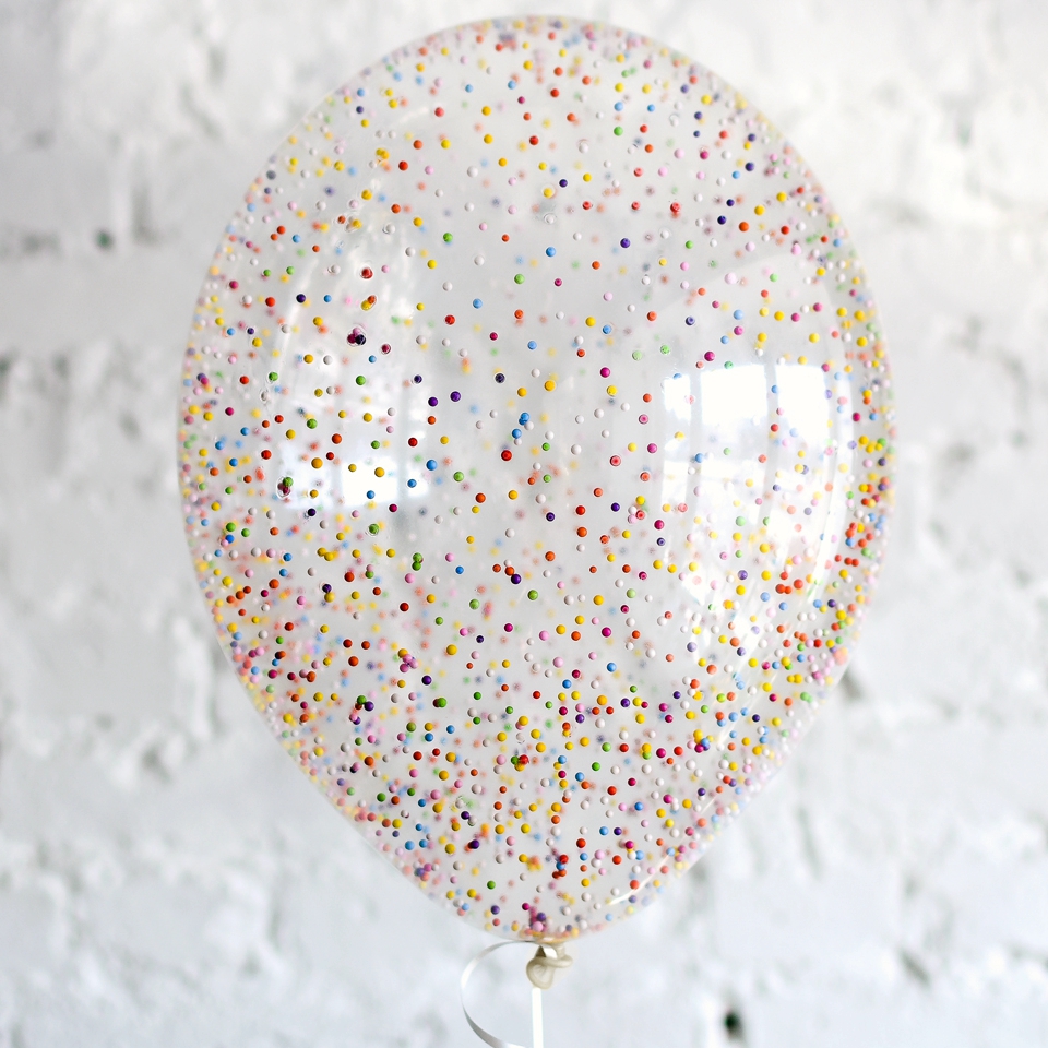 - 1 латексный шар прозрачный с мелким разноцветным пенопластом на ленте.