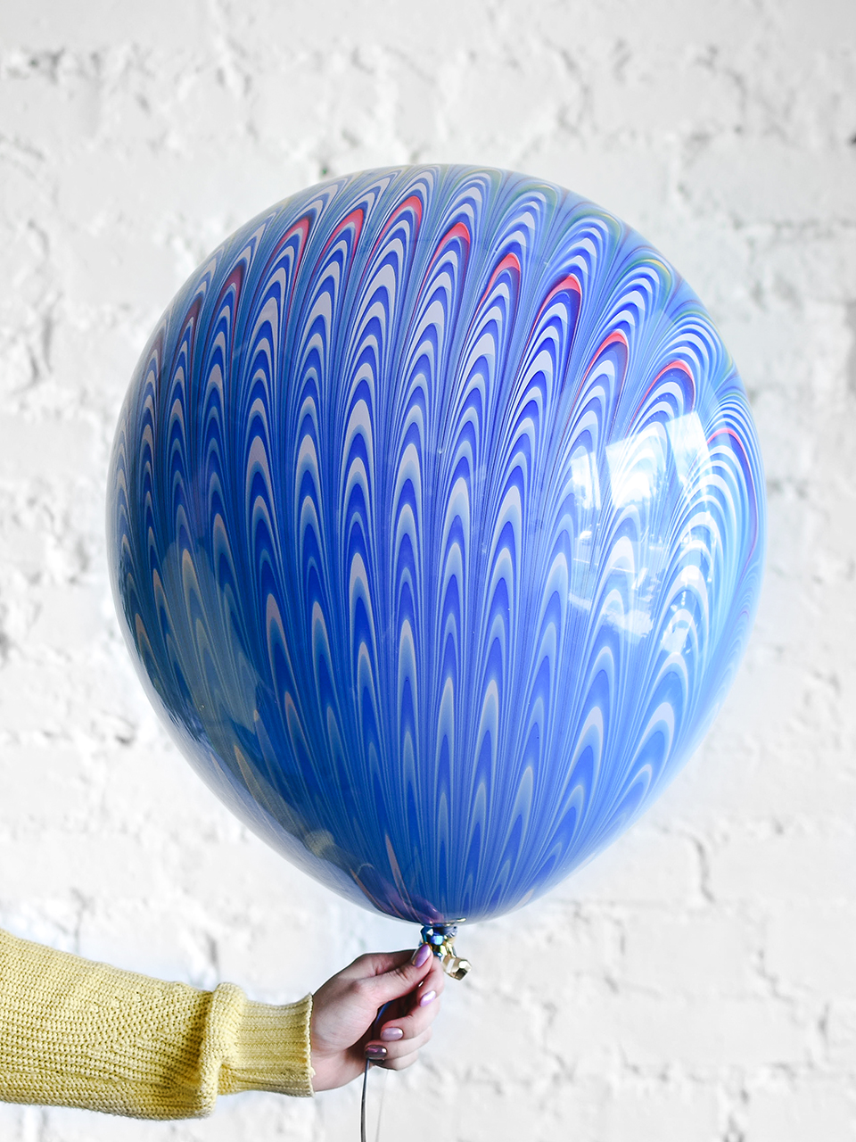 - 1 латексный шар Синий мраморный на ленте.