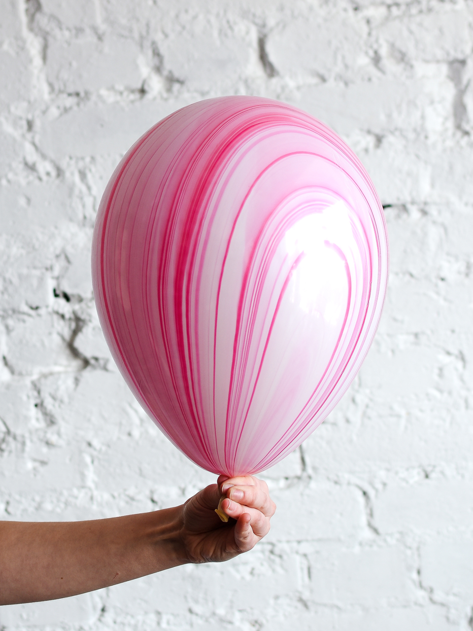 - 1 латексный шар Супер Агат Red White нежно-розовый на ленте.