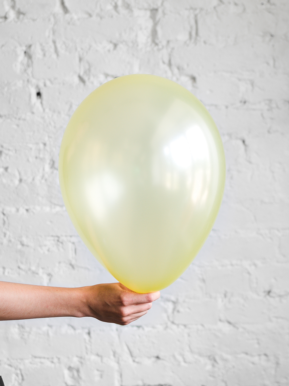 - 1 латексный шар светло-жёлтый перламутровый на ленте.