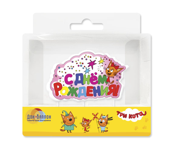 Свеча Фигура, Три Кота, С Днем Рождения!, Розовый, 7 см, 1 шт.